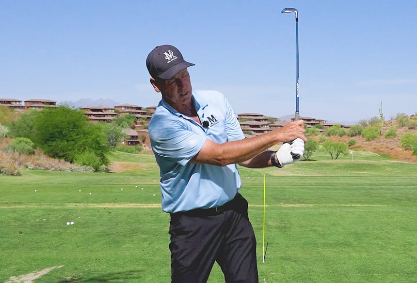 Pro Tip: Hit shots while deliberately recoiling the club back into the follow-through L position. This reinforces muscle memory and helps you feel the proper rhythm.
